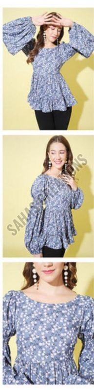 Leading Wholesaler and Trader of Blue Plain Heavy Crepe Top, Mustard Plain Heavy Crepe Top and Printed Crepe Ladies Top from Ludhiana.