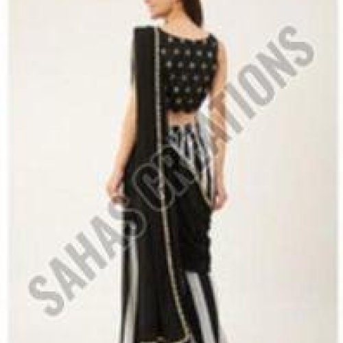 Black Printed Georgette Saree