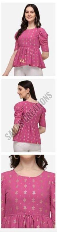 Leading Wholesaler and Trader of Blue Printed Rayon Top, Coffee Printed Rayon Top, Pink Printed Rayon Top and V Neck Printed Rayon Top from Ludhiana.